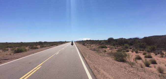– Argentina is full of enormous valleys. We cycled towards that big snowy mountain in the distance for 3 days. Not really our preferred road. –
