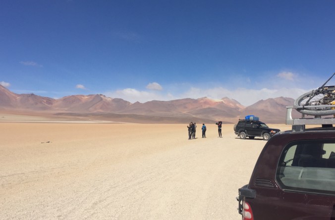 The south west of Bolivia is extremely pretty: the National Park Eduardo Avorao has some of the most out-of-this world landscape, with snowy volcanoes and lagunas in the most bizarre colours. You can see wild flamingos and you exit it via the famous Salar de Uyuni. There’s a notorious cycle route going through the park, called the Ruta de Lagunas. This ruta is pretty challenging, due to extreme bad road conditions, the high altitude, the strong headwind and freezing nights, and the lack of inhabitants (read, no shops and hardly any places to stay for about a week). Still, after 8 months on the bike, we tought we were as trained as ever possible to make this beautiful expedition a success. Albeit with some doubts whether it was not too demanding and slightly out of our reach: a rough route is one thing, but not being able to recover at night in a warm bed or be secured of enough water and food, is another.